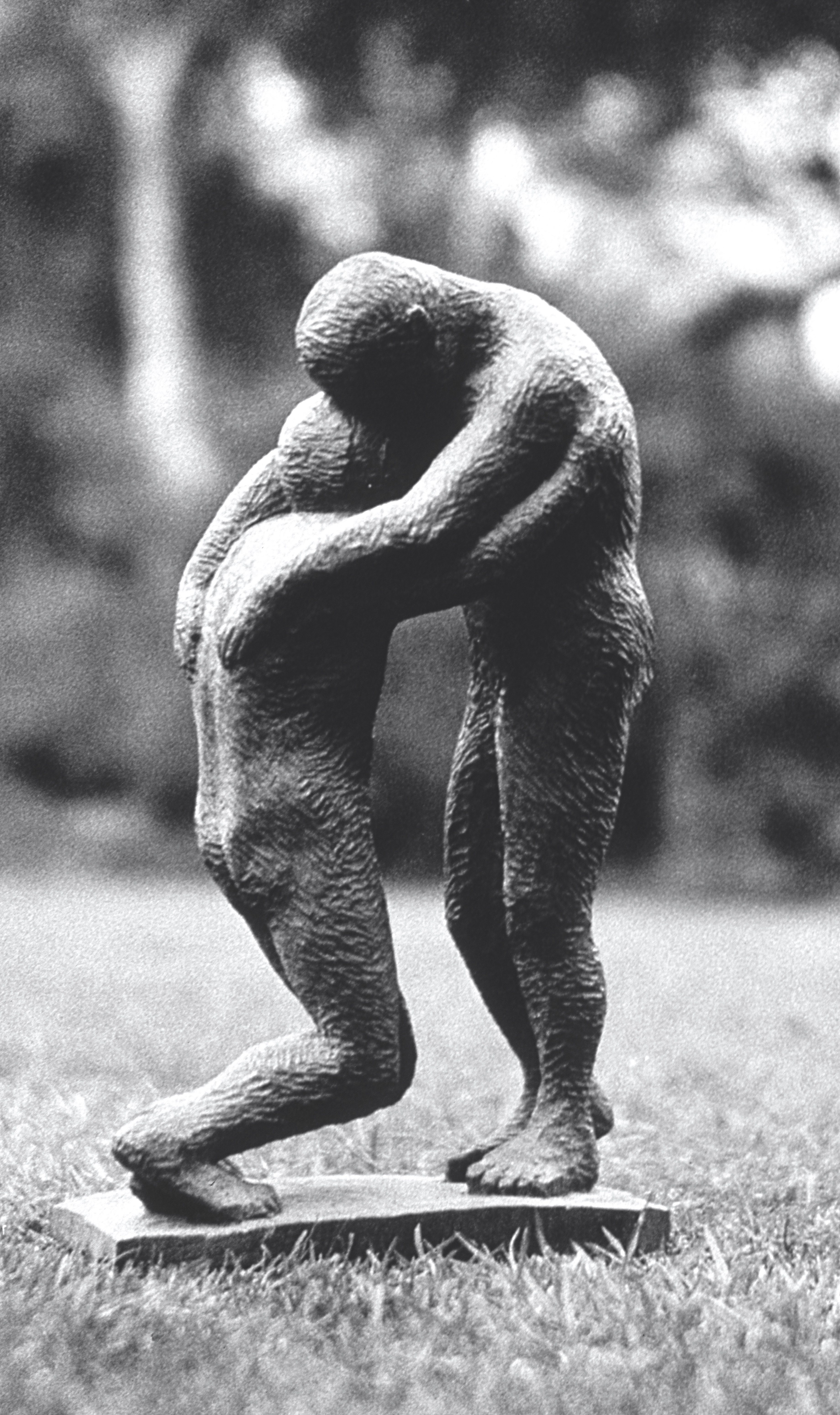 I was guided in making this carving by one of the teachers at Manchester, Ted Roocroft. I thought the subject was Cain and Able, fighting. My older brother and myself. I was wrong! The relationship between the two figures is ambiguous. At first glance the figure on the left appears to be collapsing and being held up by the figure on the right but it is possible that the figure on the right is forcing the other figure to the ground. One can also see the figure on the left as attempting to lift the figure on the right.